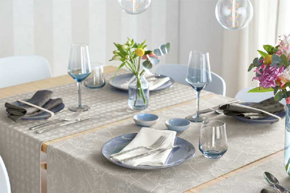 Sander bietet eine enorme Auswahl an perfekt aufeinander abgestimmten Artikeln: Tischdecken in unterschiedlichen Größen, Tischläufer, Tischsets und Kissen – alles für ein stilvolles, in sich stimmiges Wohnambiente. Besonderes Merkmal der Sander-Kollektion ist die außergewöhnliche Bandbreite an Farbvariationen und zahlreiche Kombinationsmöglichkeiten der Basics mit Dekor-Highlights und saisonalen Trendartikeln.